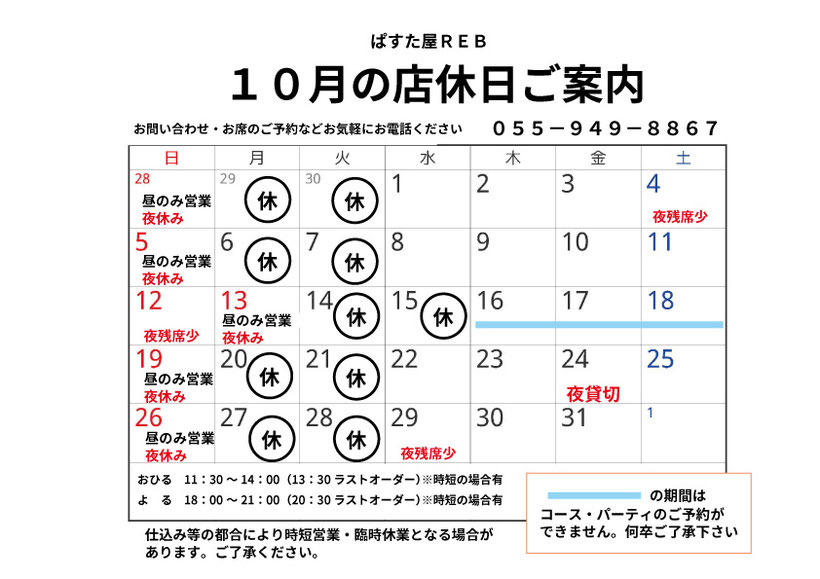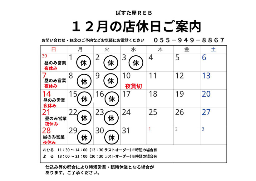 ※店休日でお電話がつながらない場合はメールにてお願いいたします。 reb@izu.tnc.ne.jp