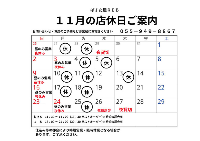 055-949-8867 ぱすた屋REB